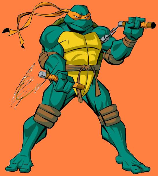 Michelangelo nosí oranžovou pasku a ovládá Nunchaku. Michelangelo miluje relax, party a jíst pizzu /a nejen pizzu miluje jíst cokoliv a kdekoliv :-)/. Je nejmladší ze čtyř. Má rad komixi a komixové hrdiny a televizi :-) Ze všeho si dělá legraci,a rád si dělá srandičky i ze svých bratrů-např. že jim schová zbraně na takové místa kde by je nikdy nehledali a baví se tím jak je nemůžou najít. A nejradši se pouští do Raphaela, který mu většinou vrazí "výchovný" pohlavek:-) On je pojmenovaný po Michelangelo Buonarrot.